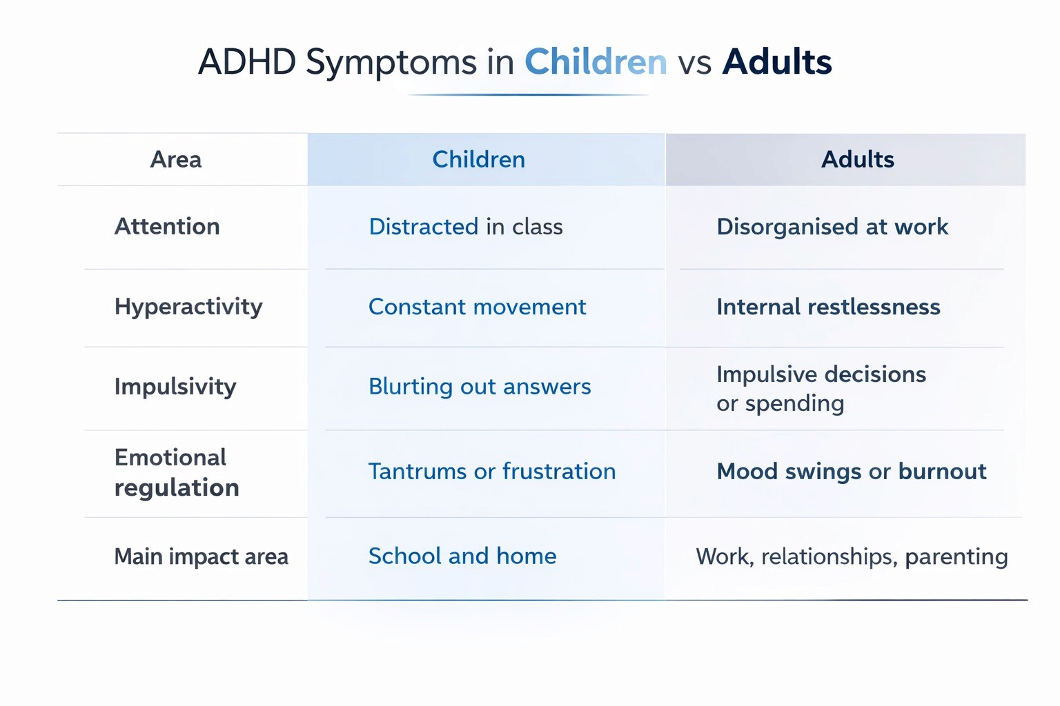 ADHD Symptoms in Children vs Adults: A Practical Comparison